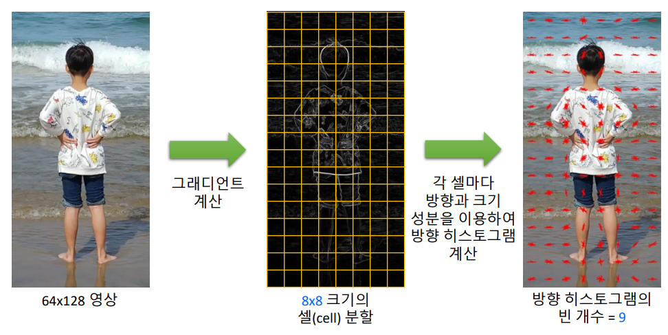 - 영상의 지역적 그래디언트 방향 정보를 특징 벡터로 사용