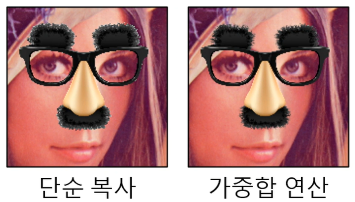 가중 연산으로 계산해줘야 자연스럽게 합성이 될 수 있다.