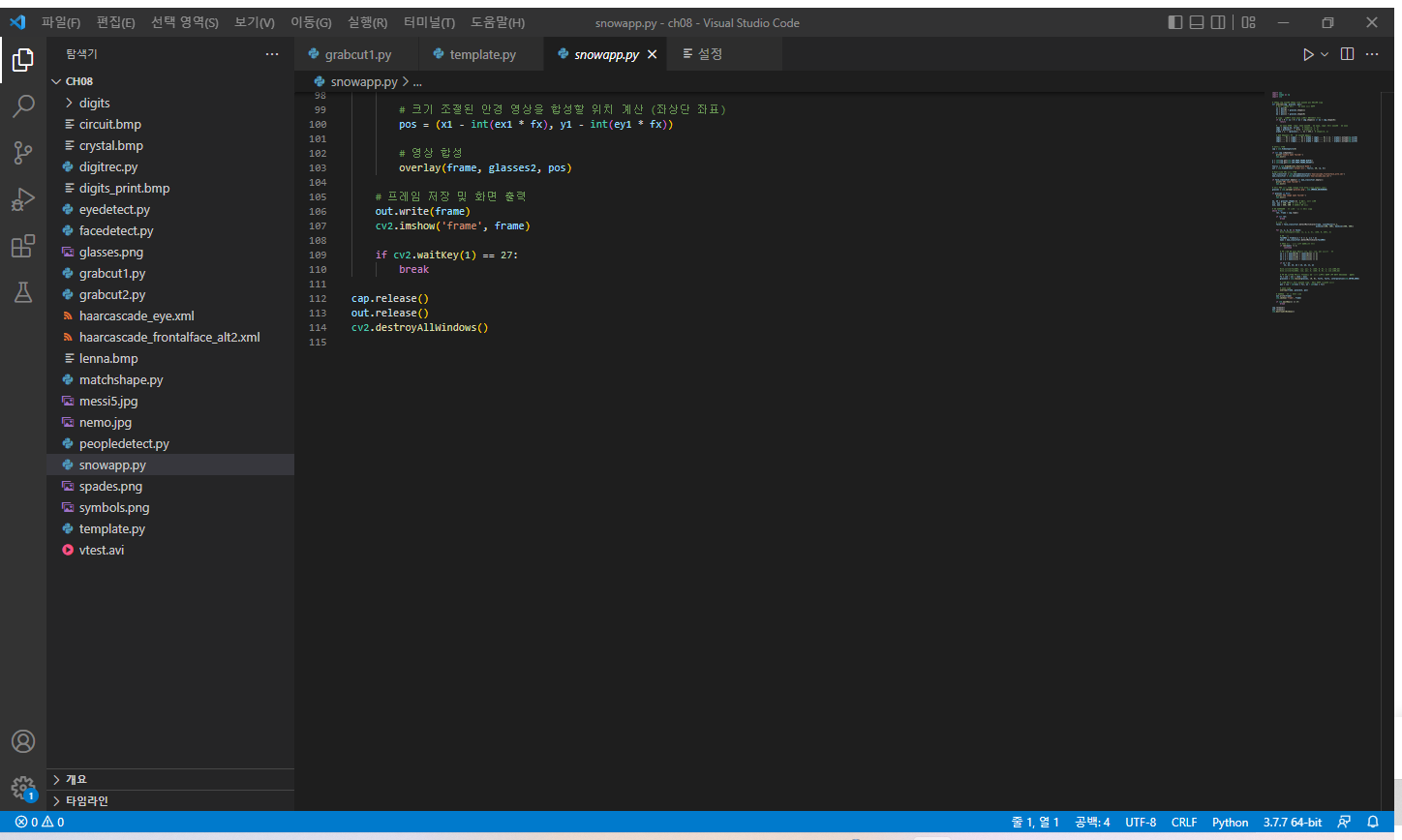 그리고 합성된 결과를 output.avi 파일로 저장하는 코드를 작성한다.