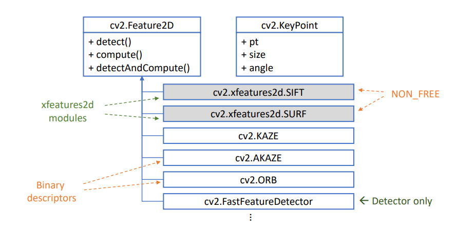 이와같이 각각의 클래스들의 객체를 생성해주고 실제 특징점 검출 함수를 사용한다.