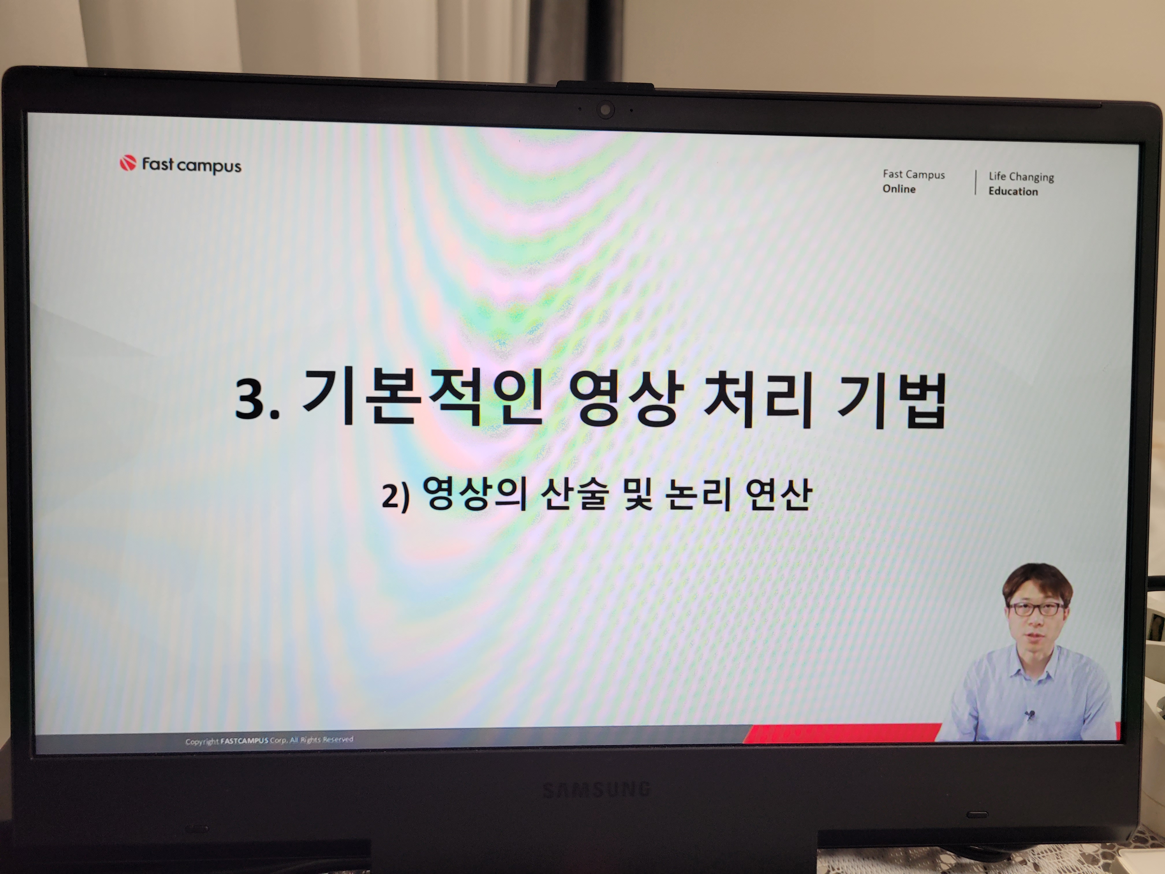 2022.05.16 금일은 블러링 ( 평균값 필터 ) 관한 강의였다. 평균값 필터란 ? - 영상의 특정 좌표값을 주변 픽셀 값들의 산술 평균으로 설정하는 것 - 픽셀들 간의 그레이스케일 값 변화가 줄어들어 날카로운 에지가 무뎌지고, 영상에 있는 잡음의 영향이 사라지는 효과가 있다. 위와 같이 자기 자신을 포함해 주변부의 픽셀의 개수를 나누어 필터링 해주는 것. 실제로 왼쪽 원본 영상보다 오른쪽 3x3 , 5x5크기의 마스크로 평균값 필터를 적용한 영상들이 더욱 부드러워지는 것을 볼 수 있다. 이렇게 필터 결과는 부드러워질 수 있지만 더 많은 연산량이 필요하기 때문에 시간이 더 소요될 수 있다. kernel 의 변수에 np.array ( [[1/9, 1/9, 1/9], [1/9, 1/9, 1/9], [1/..