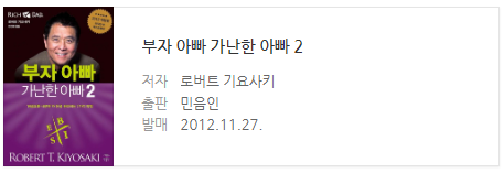 기존에 부자 아빠 가난한 아빠1를 꽤 재밌게 읽고나서2편도 있다는것을 알게 되어 주문한지 한달정도 뒤인 이번에완독하게 되었습니다.아직 1번밖에 읽지못했지만기존에 읽었던 1편에서와 맥락은 비슷하고추후 한번 더 읽어볼 예정이지만일단 지금까지 이해한 내용들을 이번 휴가때 정리해보려고 합니다. 목차 느낀점 유유상종 그는 최근 가장 많은 시간을 함께 보내는 사람의 명단을 적어보라고 한 뒤 각각의 이름을 살펴보라고 했다." 당신은 지금 당신의 미래를 보고 있습니다. 당신이 가장 많은 시간을 함께 보내는 이 여섯 명이 당신의 미래를 결정하지요 "일단 명단의 표면 아래를 들여다보게 되자 나는 대단히 흥미로운 사실을 발견할 수 있었다.내가 싫어하는 나 자신과 내가 좋아하는 나 자신에 대한 통찰력을 얻게 되었던 것이..