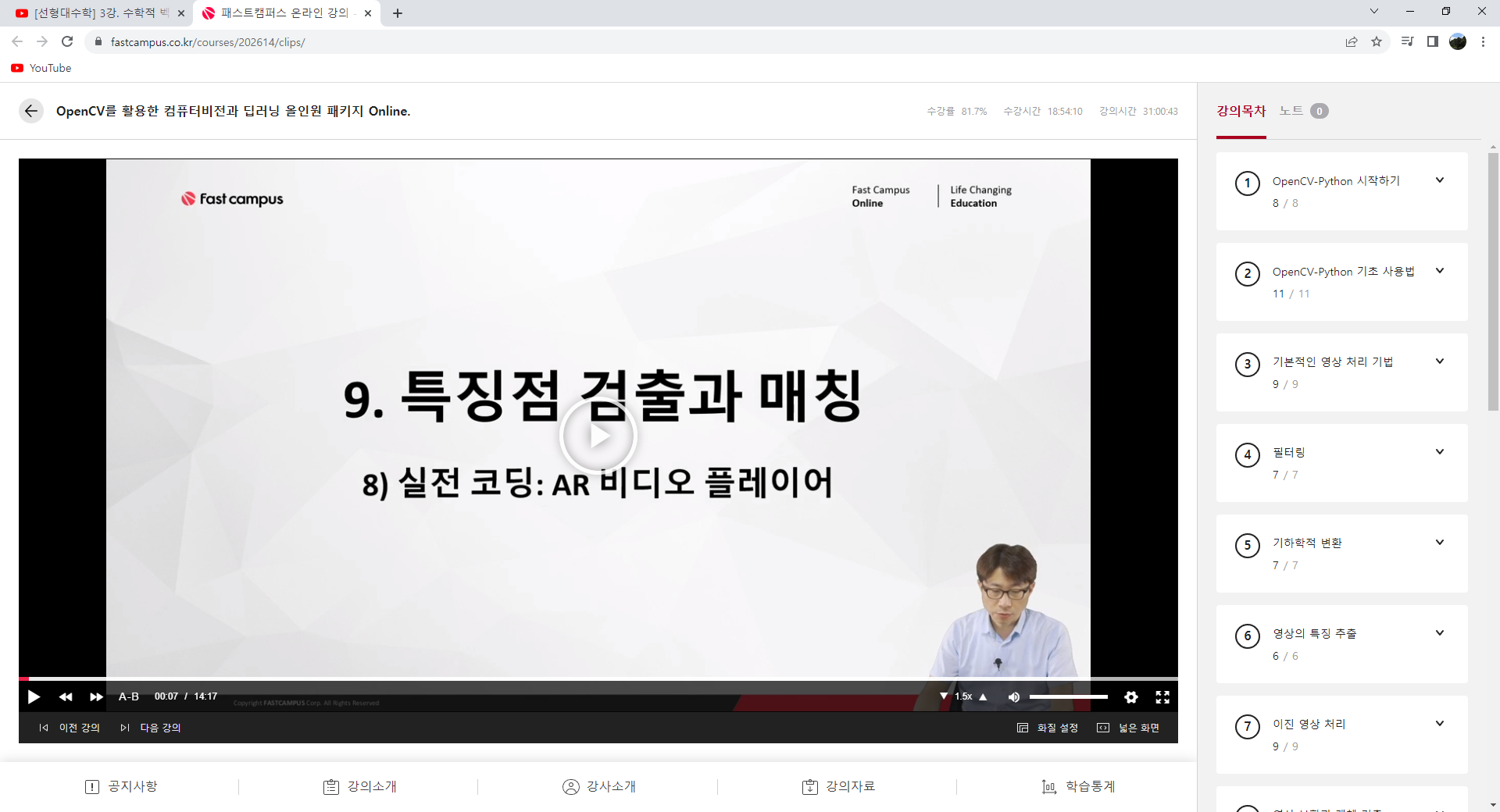2022.06.28 금일은 배경차분 이동평균 배경에 관한 강의였다. 지난 강의에서 사용했던 정적 배경 모델 사용시 문제점을 보자면 - 미리 등록된 기준 영상이 실제 배경과 크게 달라진 경우 오동작 그림자 등의 영향으로 인한 조도 변경, 새로운 객체가 화면에 고정될 경우 그래서 새로 들어오는 영상을 분석하면서 업데이트를 해주는 작업들이 필요하다. 그때 필요한 방법이 오늘 배울 평균 연산이라는 방법이다. 평균 영상에 의한 배경 영상 생성 - 움직이는 객체가 존재하는 수백장의 입력 영상으로부터 평균 영상을 구하면? 위 영상을 보게되면 자동차들이 잠깐 나타났다가 화면에서 사라지게 되는데 위와같은 영상을 수백장을 받아서 평균영상을 만든다. 수백장의 영상이라고 하면 굉장히 많은 것 같지만 초당 30 Frame 이라..